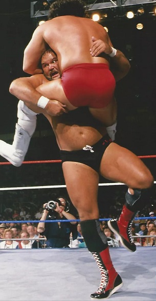 Jay_Jones: You reach down and grab me up by my hair which makes me YELP. You ram your shoulder into my sore back and lift my 200 lbs up into a torture rack as if I weighed nothing at all. I squirm and moan as the pain in my back increases. The referee is watching closely and asking me if I want to give up. I want to submit but no way will I give up to you unless I feel that I will receive a permanent injury if I fail to quiet. In spite of the pain that I am in, the heat from your strong shoulders against my back is making the bulge in my trunks grow so big the fans can now see clearly that I am getting turned on by you. yt